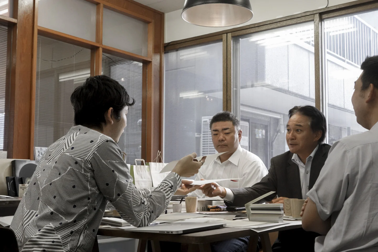 大和板紙さんと顔合わせ。以前から名刺制作などの案件で大和さんの板紙を何度も使用していた。厚紙の分野ではデザイナーの間で有名な企業。大手にはできない個性的な紙をたくさん商品化している。デザイナーとのコラボやオーダーメイドの紙開発などは手慣れたもの。“デザイナーという生き物”を理解されているようだった。テーブルにはおもしろい紙のサンプルが大量に並べられた。紙の話は酒がなくても何時間でもつづけられる。エゾマツの紙の開発については可能性が少しづつ見えてきた。僕の出身である関西の会社と一緒に仕事ができることもうれしい。関西弁の打ち合わせに心がなごむ。